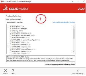 Bỏ tick những phần mềm bạn không dùng đến và SOLIDWORKS bắt buộc phải có rồi nhấn Next.