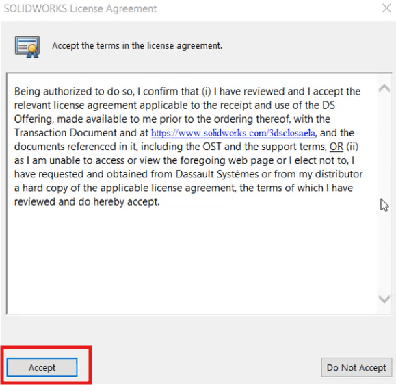 Bước 8: Nhấp chuột vào “I accept the terms of the SOLIDWORKS” => Chọn “Download and install” để tiến hành tải và cài đặt.